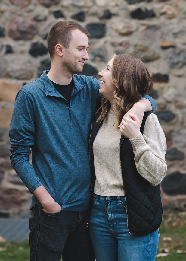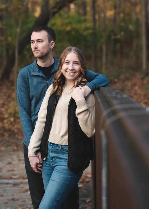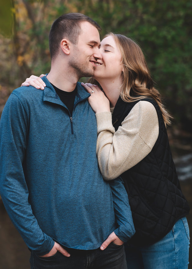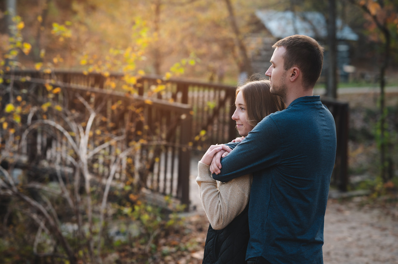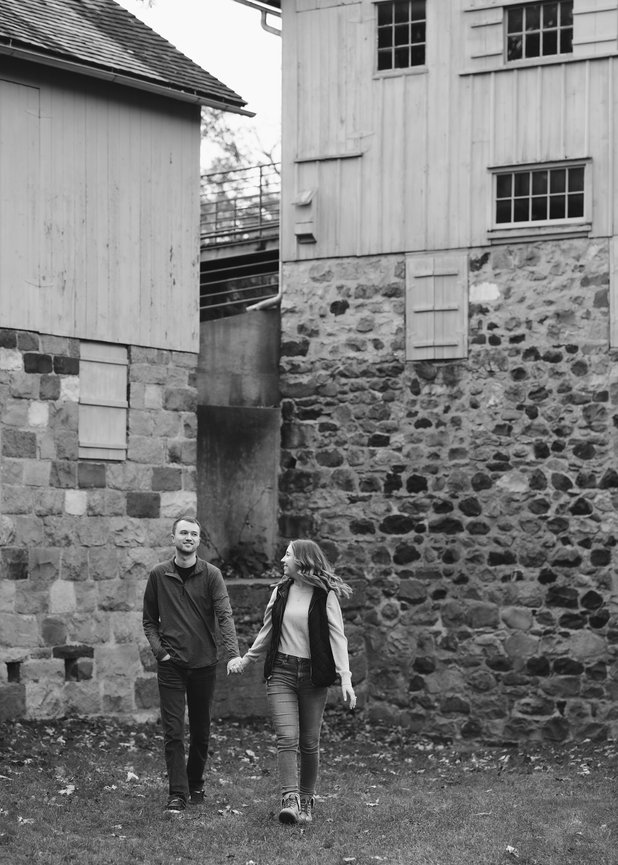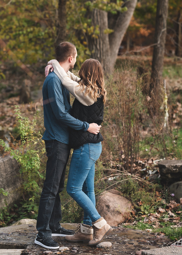 When I was communicating with Julia, the goal was to capture the last colors of fall before they were all gone. When we decided on this location, I knew pictures would look diverse, considering there are different options for good scenes, including two historical mills with beautiful stone walls, a log cabin, a bridge, the river that runs through, and amazing trails. We couldn't ask for a better location. Working with Julia and Colin was so amazing. We captured affection expressed through the simple interactions that Julia and Colin typically share, which made the photos look and feel authentically theirs.