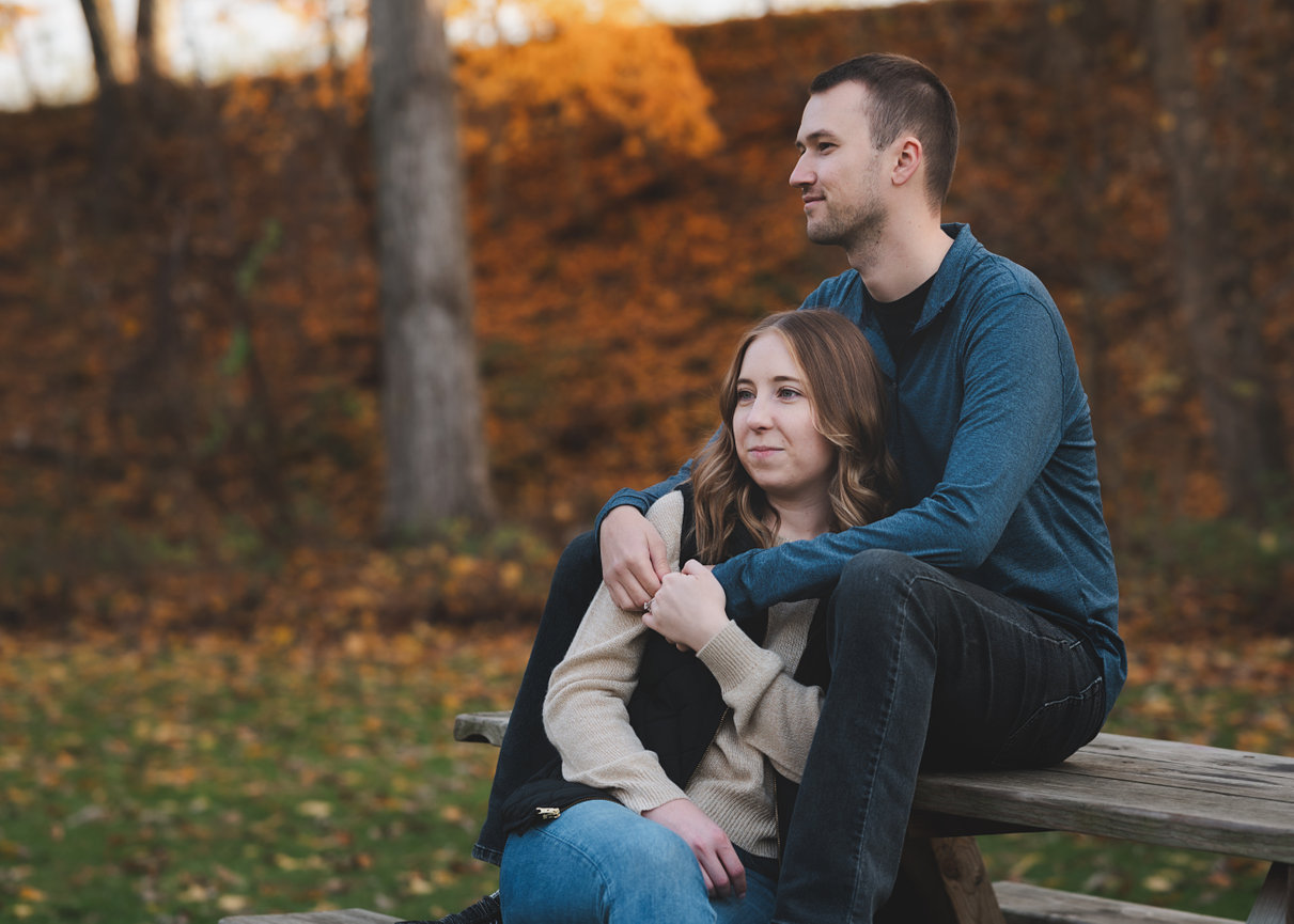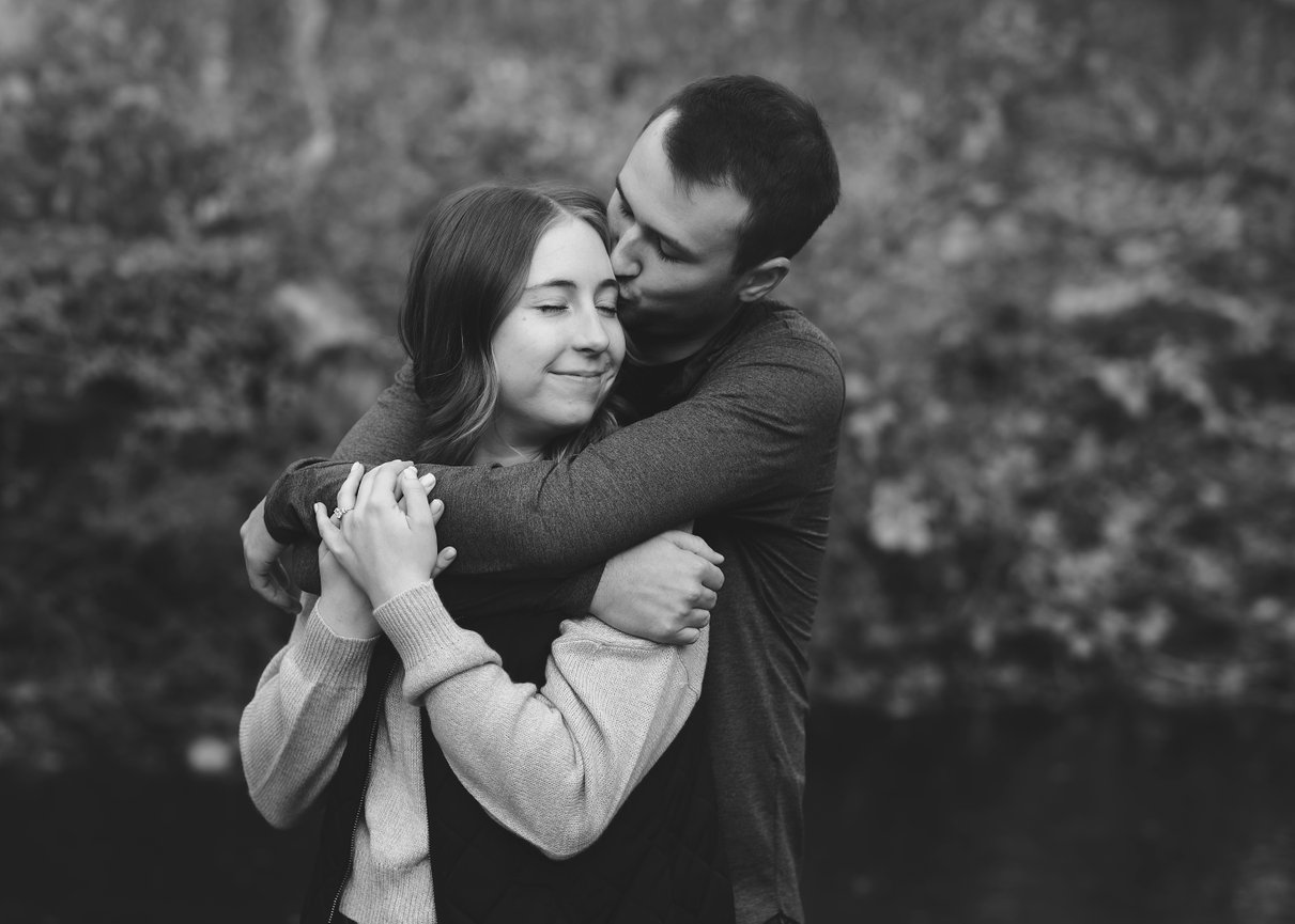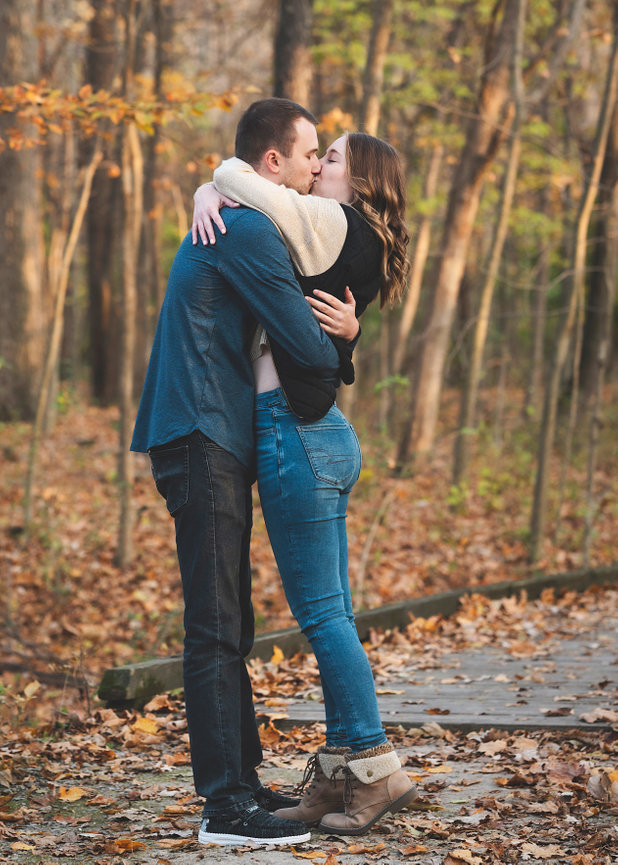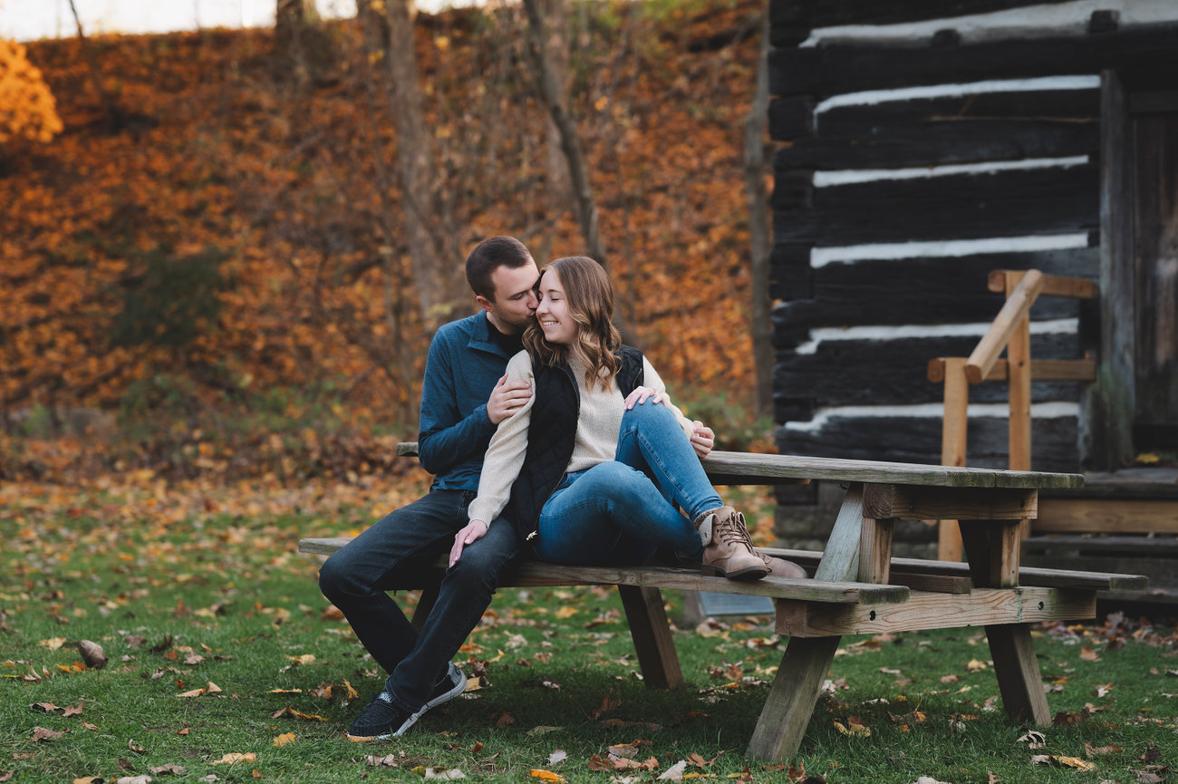 When I was communicating with Julia, the goal was to capture the last colors of fall before they were all gone. When we decided on this location, I knew pictures would look diverse, considering there are different options for good scenes, including two historical mills with beautiful stone walls, a log cabin, a bridge, the river that runs through, and amazing trails. We couldn't ask for a better location. Working with Julia and Colin was so amazing. We captured affection expressed through the simple interactions that Julia and Colin typically share, which made the photos look and feel authentically theirs.